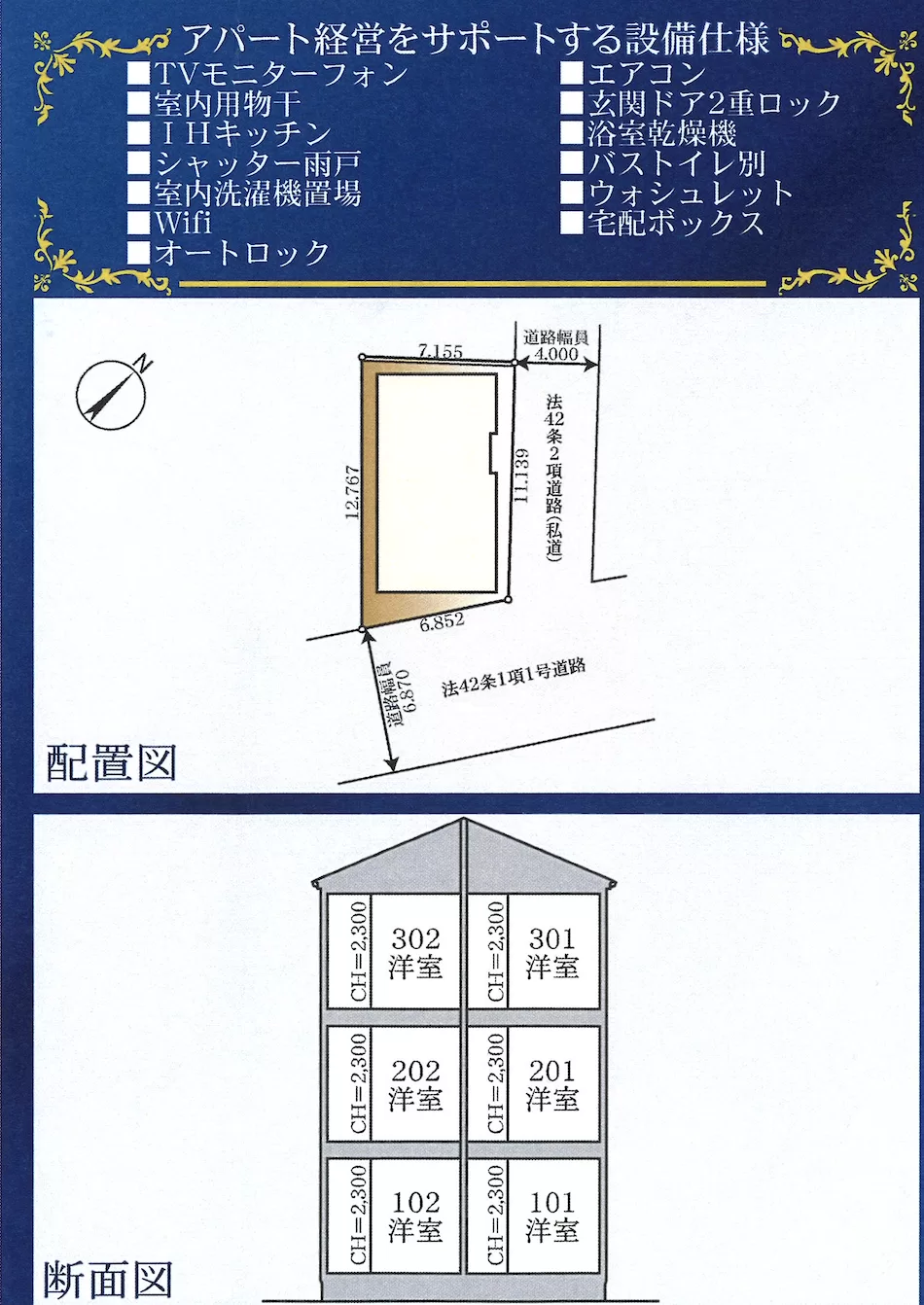 2026年3月10日 / 最終更新日時 : 2026年3月10日 admin_dev 新築売アパート 江戸川区 平井 新築一棟売アパート 12,800万円│収益物件 (平井4AP ) 新築売りアパート 江戸川区平井一丁目 平井4AP 12,800万円(税込) お問い合わせ JR総武線「平井」駅徒歩12分。 防犯にも強いホテルライクな内廊下仕様 1棟投資に最適!JR総武線 「平井」駅徒歩12分 の駅近物件です。JR総武線「平井」駅より 「東京」駅 20分、「新宿」駅 33分で主要駅へも快適にアクセスできます。付近にはコンビニや飲食店、スーパーなどが充実していて生活に大変便利な立地です。全室ともトイレとバスは別で、借主に人気の高い仕様になっています。防犯に強いオートロック、ホテルライクな内廊下仕様。建設・設計住宅性能評価 劣化対策等級3級取得物件 土地面積104.57㎡ (私道部分21.80m含む) 販売価格12,800万円所在地江戸川区平井一丁目90番58、90番60交通JR総武線「平井」駅徒歩12分土地権利所有権地目 都市計画市街化区域内用途地域第1種住居地域防火指定準防火地域高度地区第3種高度地区建蔽率60%容積率274.8%設備公営水道・公共下水・都市ガス接道状況東南側幅員6.87m (公道)・北東側幅員 3.95m (私道)現況 引渡日令和8年11月予定完成日令和8年10月構造・規模木造 3階建建物面積170.25㎡建築確認番号第25UDI1K建02176号総戸数全 9室利回り6.1%賃料月収651,000円(共益費含む)賃料年収7,812,000円(共益費含む)備考 PDFを表示 販売中物件 江戸川区 平井 新築一棟売アパート 12,800万円│収益物件 (平井4AP ) Read More » 葛飾区 四ツ木 新築一棟売アパート 18,000万円│収益物件 (四つ木1AP ) Read More » 川崎区 大師橋 新築一棟売アパート 18,000万円 超駅近3分!│収益物件 (大師橋1AP ) Read More » 江戸川区 江戸川駅近5分! 新築一棟売アパート 12,660万円│収益物件 (京成江戸川2AP) Read More » 川崎市 溝の口 新築一棟売アパート 15,500万円│収益物件 賃貸稼働中! (溝口11AP-B号棟 ) Read More » 販売中土地